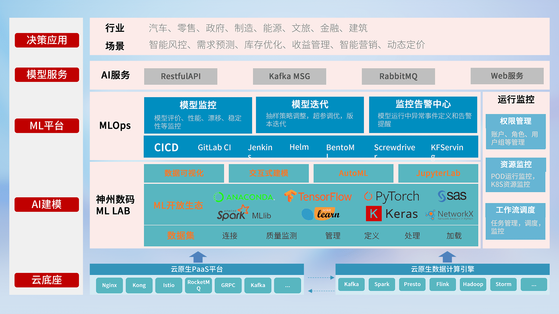 数据+模型双引擎驱动,,面向智能服务场景,,快速灵活利用AI技术,,,支持业务决策,,,,助力企业智能化转型破局。。。